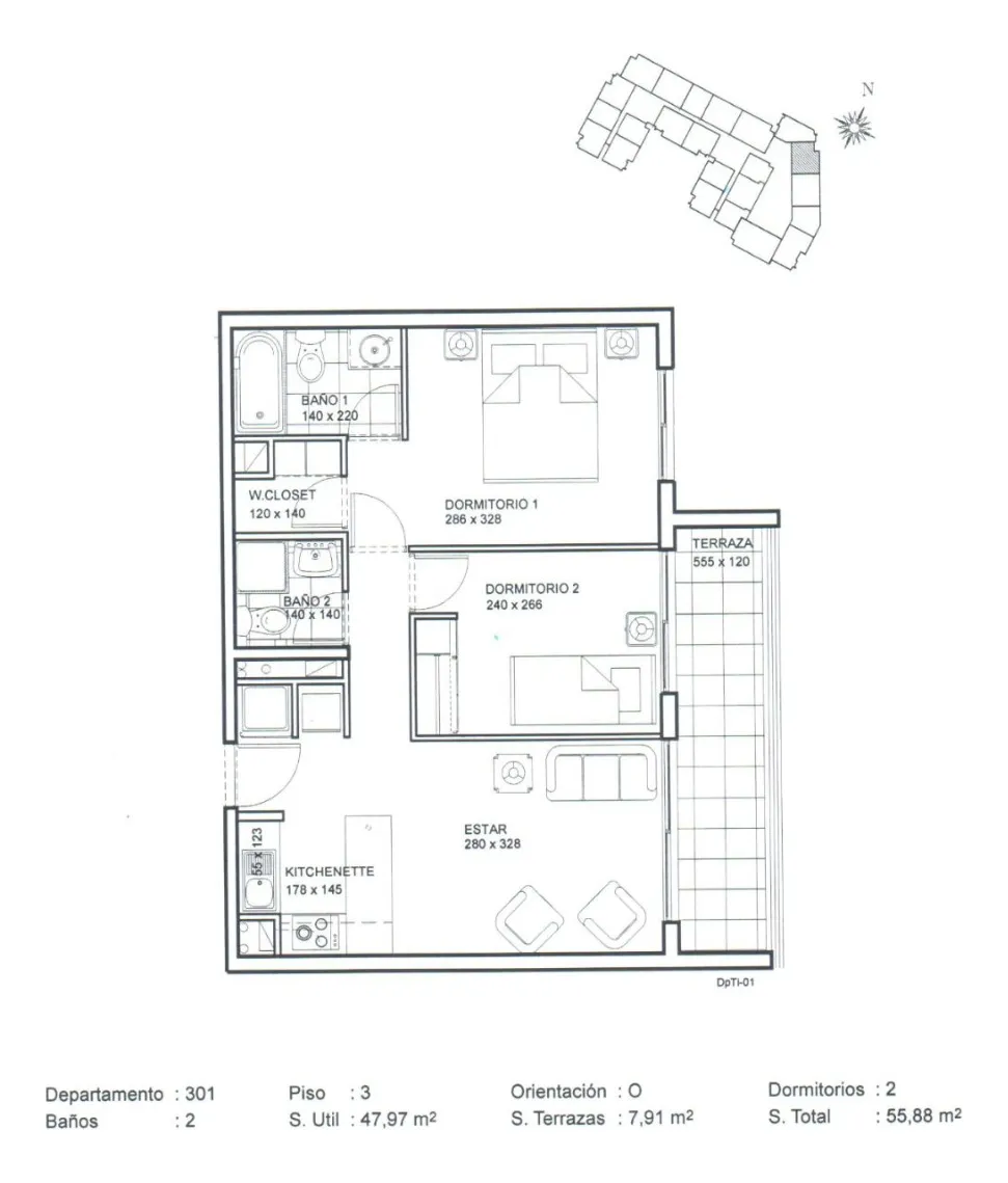 Tipología: 2 Dormitorio + 2 Baño.