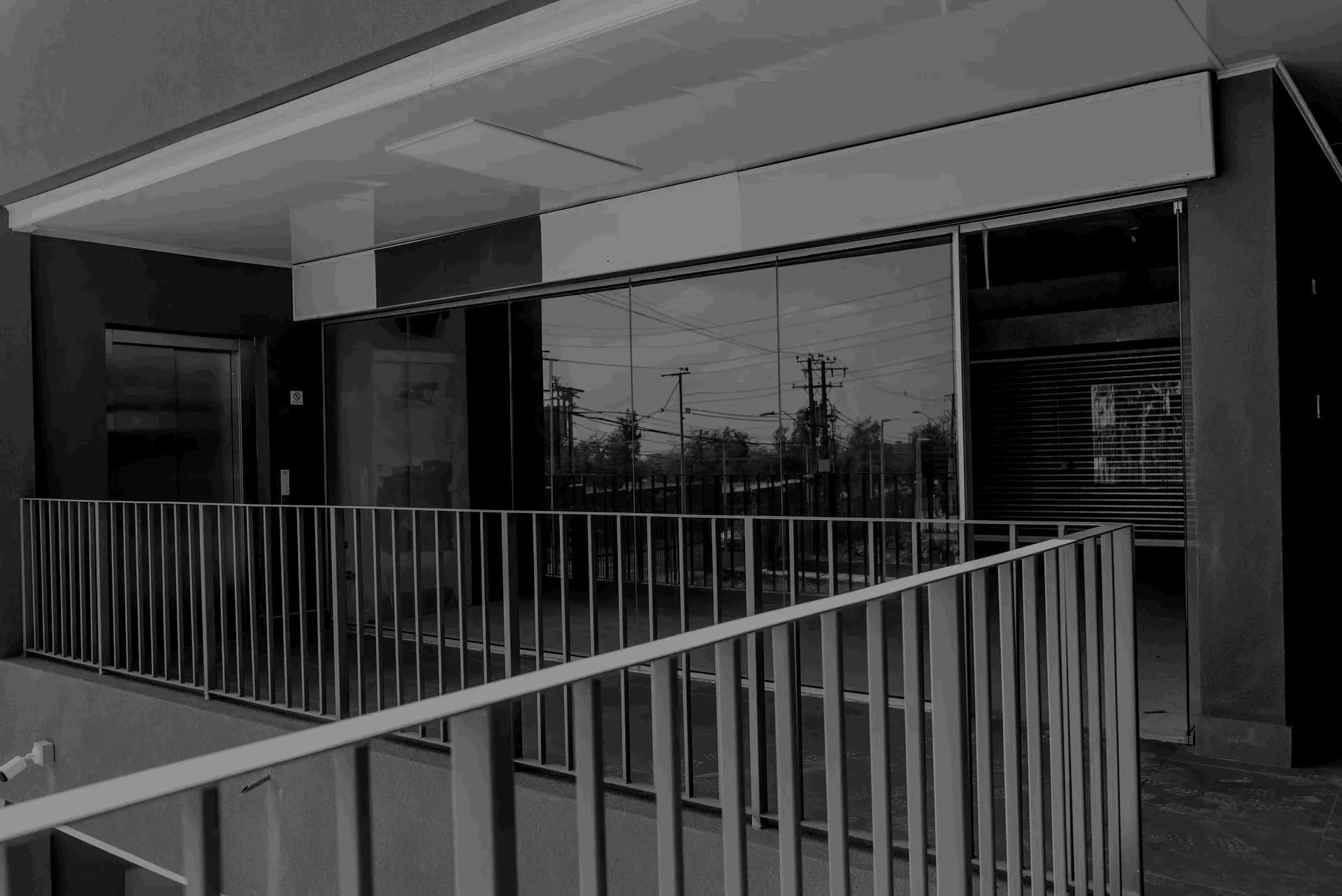 Entrada con cortina metálica automatizada.